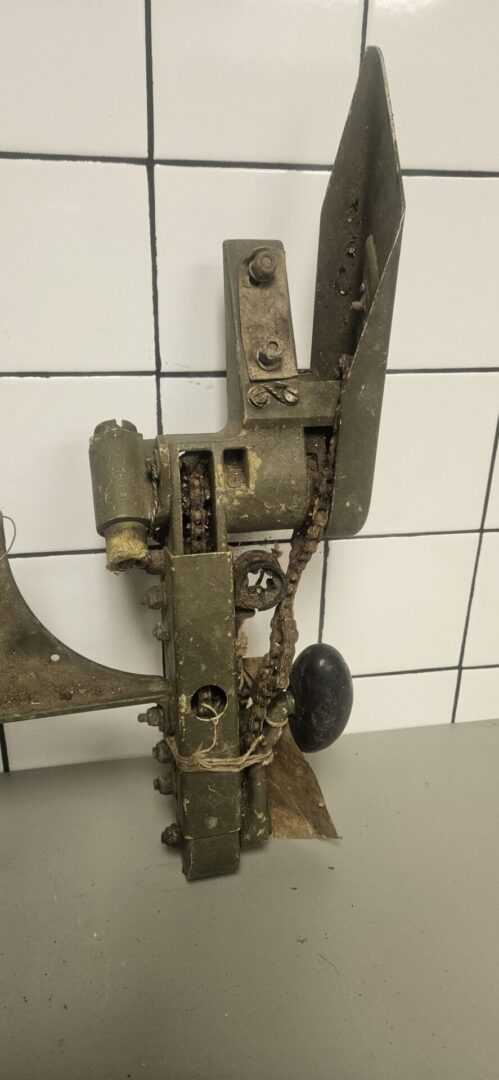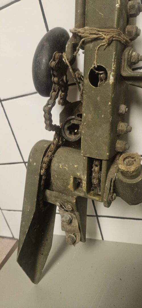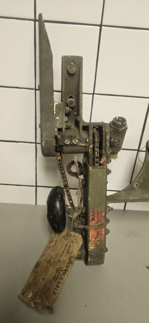 One of the most widely used turrets in WW2, the Martin 250ce was electrically powered to spin and aim. This is the hand crank for manual operation if there was an electrical error. Button clicks, handle rotates. Turret was used on: